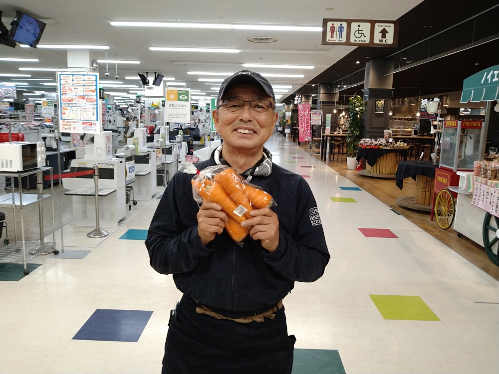 おはようございます。青果コーナーでは、北海道産徳用人参(約1kg)1袋298円(本体価格)にて販売しております。焼肉のお供や、千切りにしてカツオやごまで味付けをした『しりしり』など、どうぞ御賞味ください。