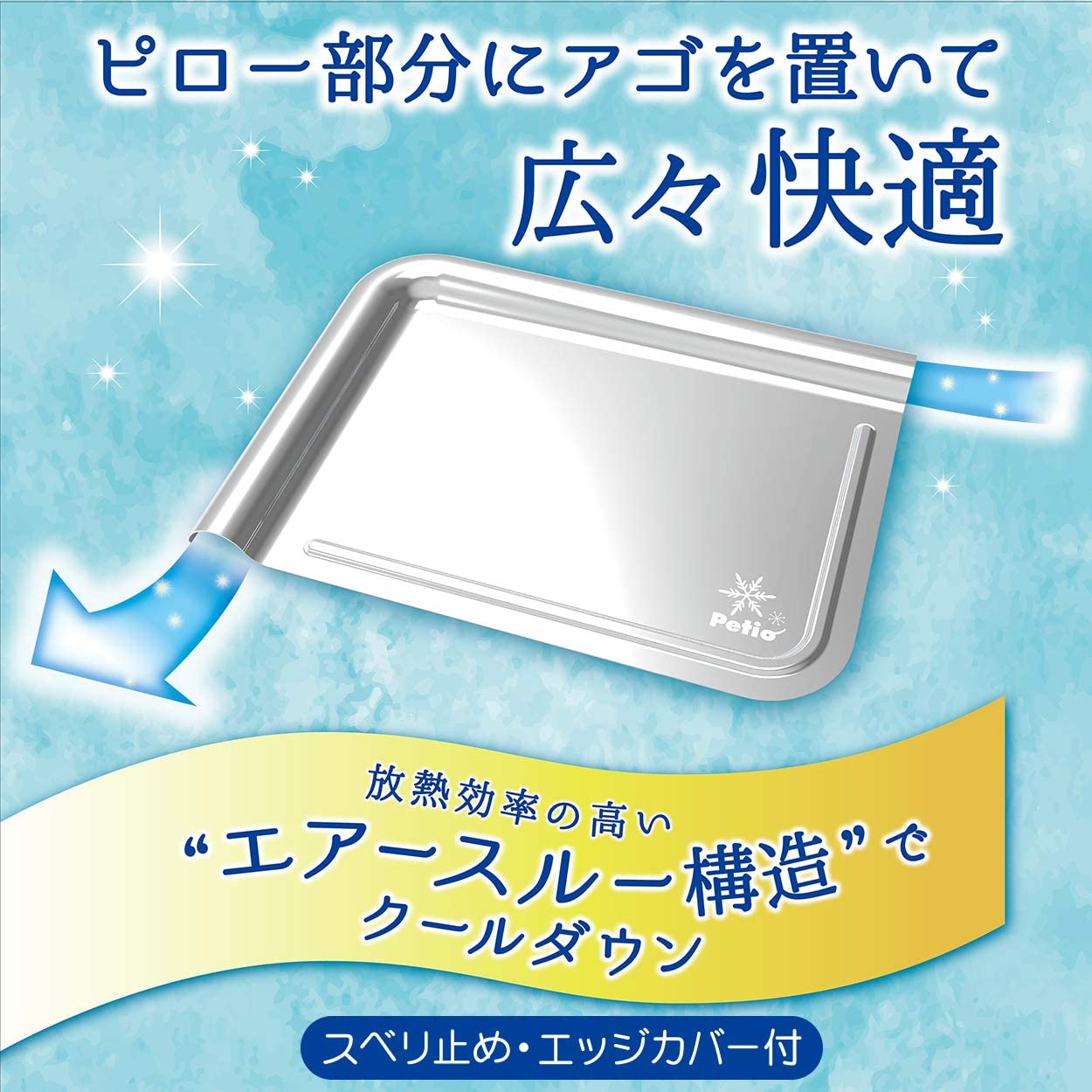 放熱効率の高い“エアースルー構造”でクールダウン。高純度アルミニウム99.6%以上使用。キズの入りにくいアルマイト加工。ピロー部分にアゴを置いて広々快適。