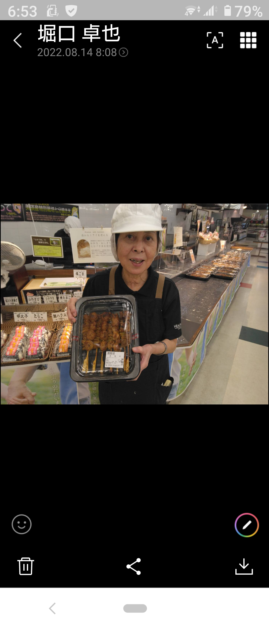 おはようございます。惣菜担当石黒です。もも・ねぎま・かわ・つくねの各2本ずつ入ってて計8本入ってます。お盆も最終日なので焼鳥を食べて過ごして下さい。8本・780円(本体価格)です。