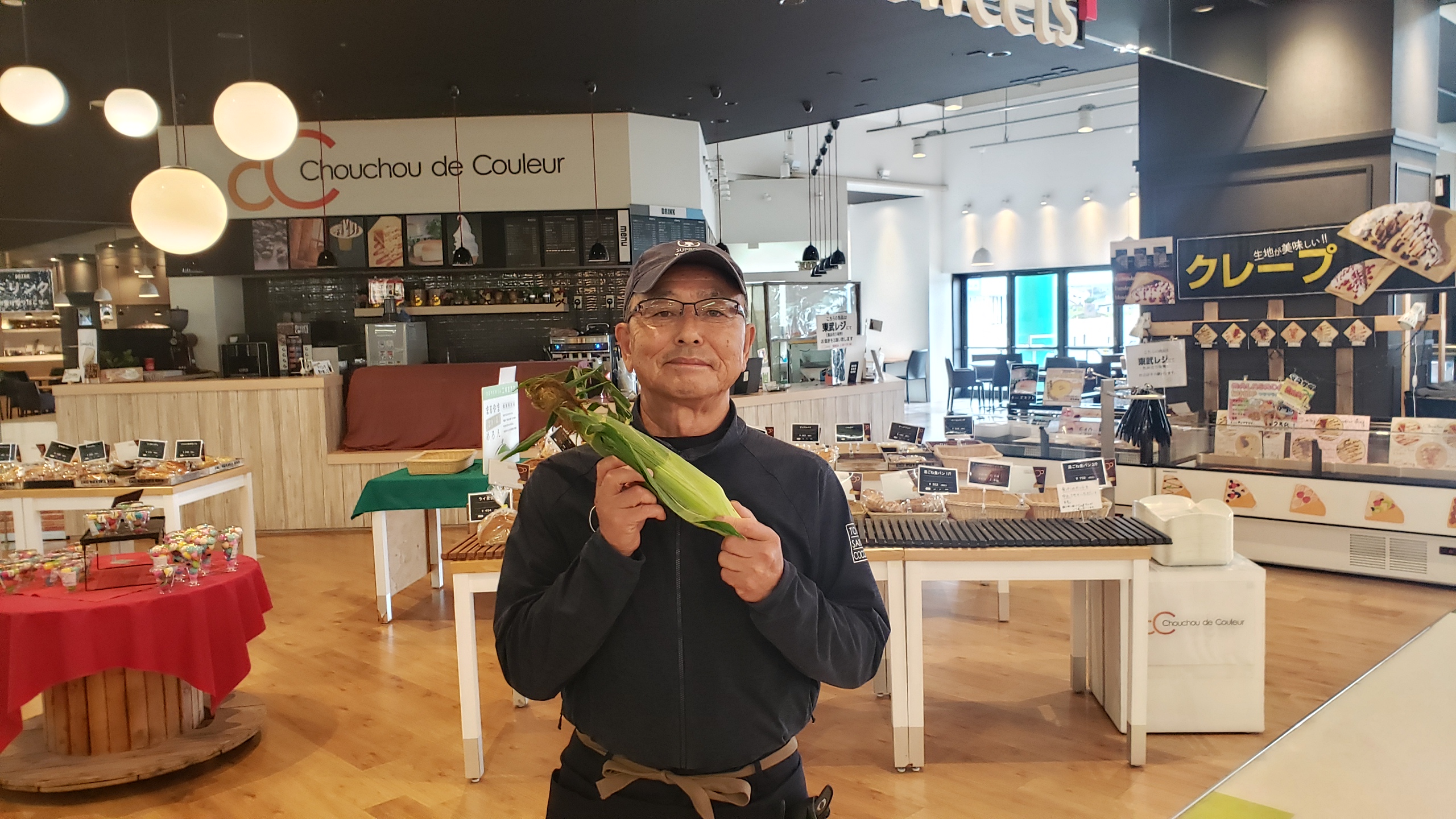 青果コーナーのオススメ!北見産とうもろこしがお買い得です。皮が柔らかく甘い品種ゴールドラッシュ。1本129円にて販売します