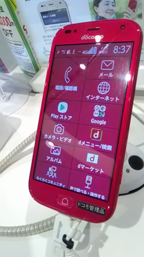 皆様おはようございます(^^)/ ドコモショップ中標津店です! 本日はシニア世代に人気のらくらくスマホのご紹介ですよ〜! 何よりもほかのスマホと比べ、、 〇文字が大きくて見やすい!〇絵付きの表示でわかりやすい!〇ラインやインターネットも使いやすい! などかなり簡単につかえるようになっておりますので、操作に不安名がある方にもおすすめですよ! 月々の使用料金も1年目は980円からご利用ができるのでとってもおすすめです! ご興味がおありの方はお気軽に当店をご利用ください。