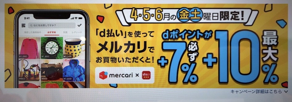 こんにちは、ドコモショップ中標津店です。6月までの金・土曜日にd払いを使ってメルカリをご利用いただくと、最大10%のdポイント還元キャンペーン中です!毎月d曜日にエントリーが必要ですので、お買い物の前にお申し込み下さいね^ ^