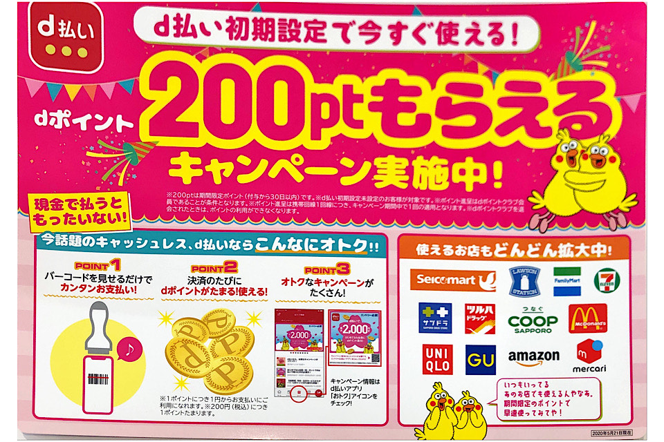 スマホの画面に表示されるバーコードをお店で見せるだけでお支払いができる簡単・便利な「d払い」。この機会にぜひご利用下さい!