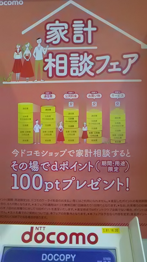 ドコモショップでケータイ料金の相談をして頂くとその場でdポイントが100ポイント貰えちゃいます!この機会に料金も見直してポイントもゲットしちゃいましょう♫