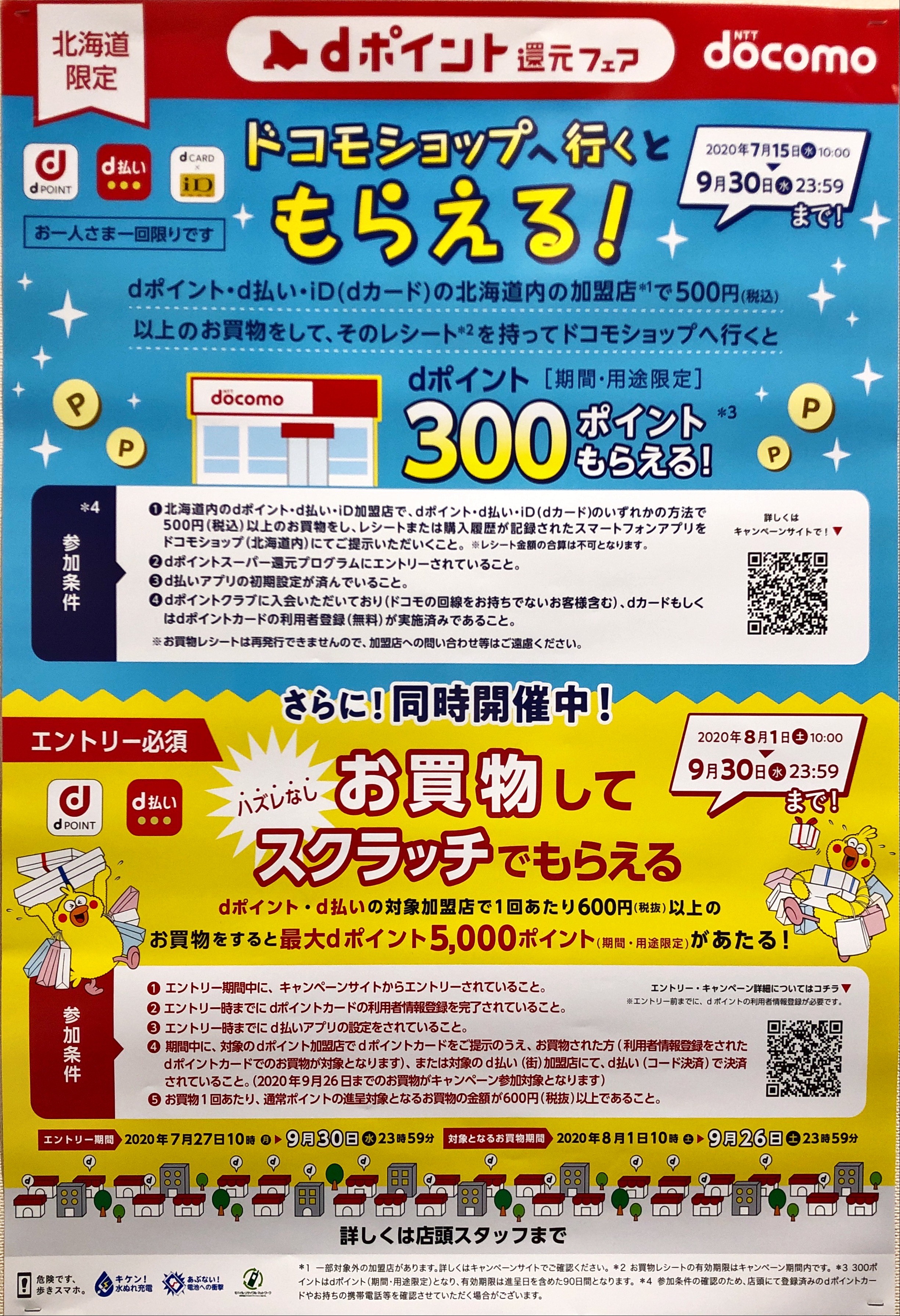 dポイント還元フェアはエントリーいただきましたか?9月30日までですので、お得なキャンペーンをぜひご利用下さい^ ^