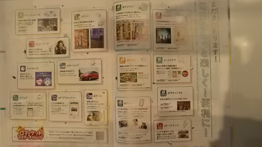 人気雑誌が450誌以上読めるdマガジン、定額制音楽配信サービスdヒッツ、毎日の歩数や体重記録がdポイントになるdヘルスケア、スマホの写真でフォトブックを作れるdフォトなどなど!他にもご用意しております(^○^)