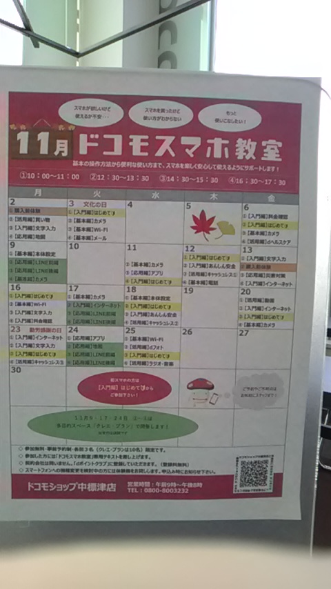 「ドコモスマホ教室」11月分のスケジュールを店頭受付と東武サウスヒルズ入口に設置しましたので、野菜の収穫や漬物作りなど、冬支度の合間にぜひご覧ください^ ^