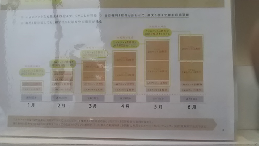 未利用分は権利を翌月へ繰り越しできますので、1枚注文すると、L版プリント10枚分の権利が残ります^ ^