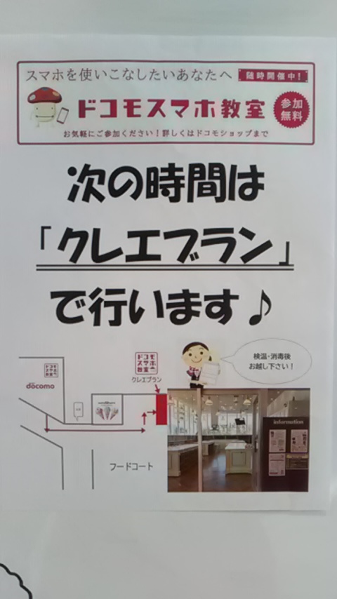 こんにちは、ドコモショップ中標津店です。いま、スマホ教室で毎月人気のLINE編などを東武サウスヒルズ店内の多目的スペース「クレエ・ブラン」で行っています^ ^