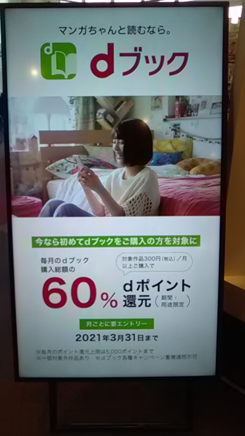 こんにちは、ドコモショップ中標津店です! 今日は雪が積もりそうですね^^; 除雪をして疲れたら、スマホでマンガを読んでみませんか?ただいま初めてご利用の方対象に、3月31日までのご購入総額から60%をdポイントで還元キャンペーン中です! 詳しくはドコモショップ中標津店で!