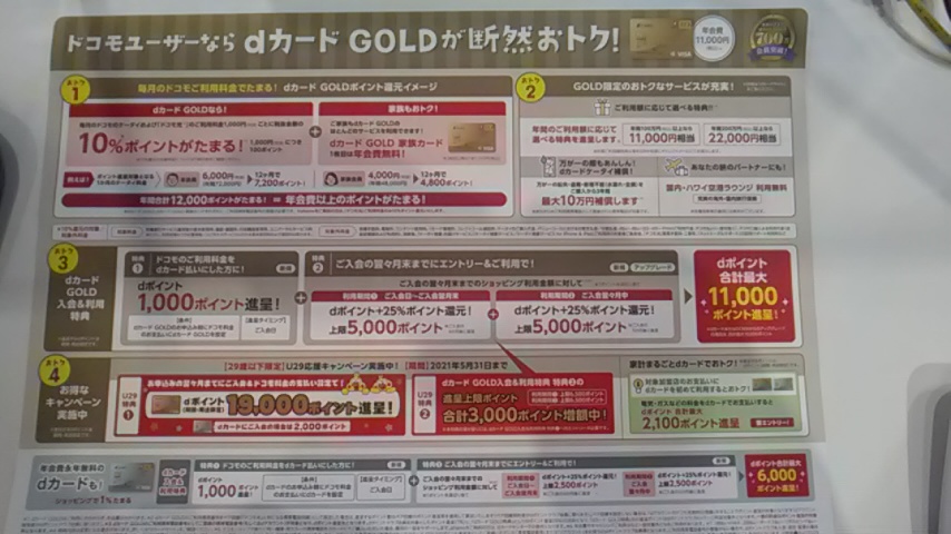 ドコモのdカード、dカードGOLDはお持ちでしょうか?今日はdカードGOLDのご紹介をさせて頂きます♩