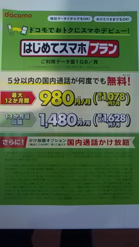 3G契約からの機種変更の場合、月額1078円(税込)からスマホが契約できるんです。2年目以降は月額1628円(税込)からとなりますがそれでもお安い!おまけに、国内通話5分以内なら何度かけてもOK!※5分超過後、30秒ごとに22円の通話料金がかかります