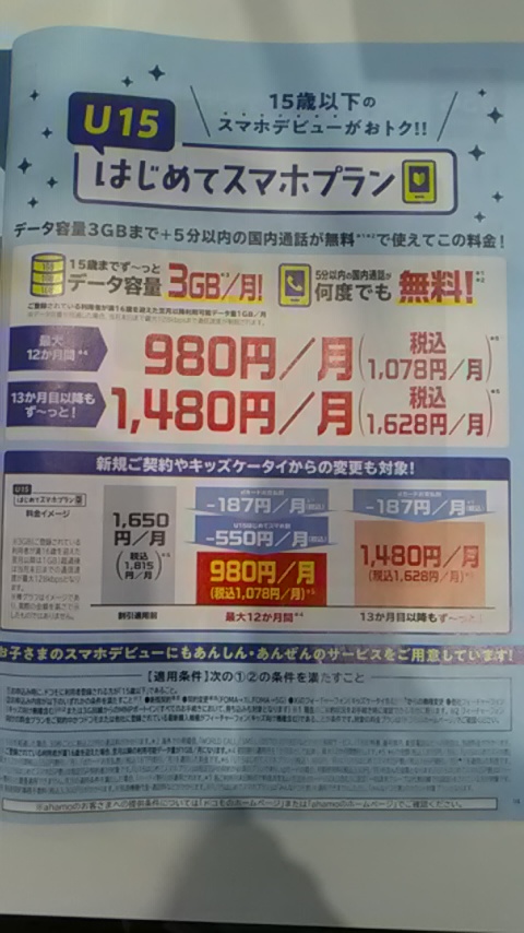 今ドコモでは15歳以下のスマホデビューがおトクなプランがあります^_^