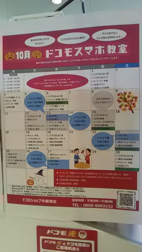 ドコモショップ中標津店です^^ 10月のスマホ教室スケジュールです!