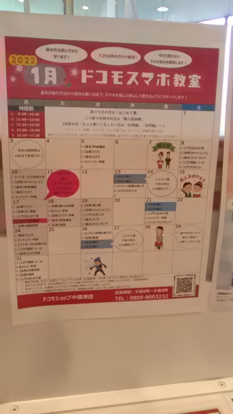 ドコモスマホ教室の1月分スケジュールを配布しています。