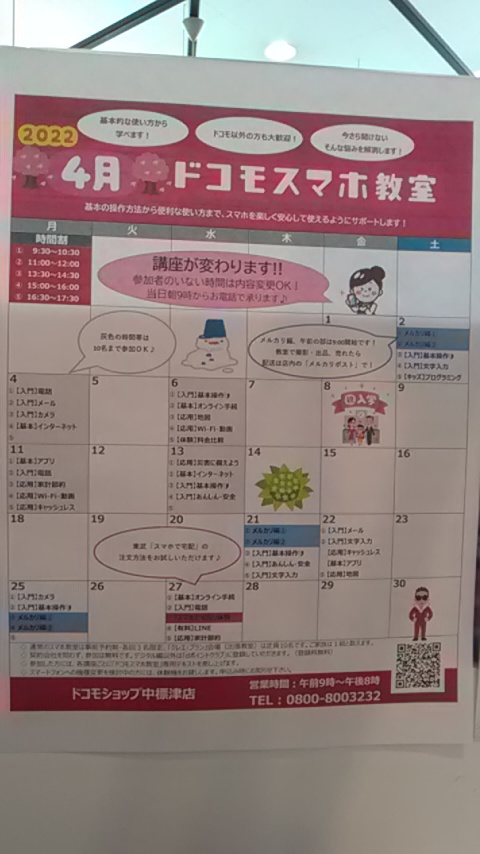 4月スマホ教室スケジュール配布中です!