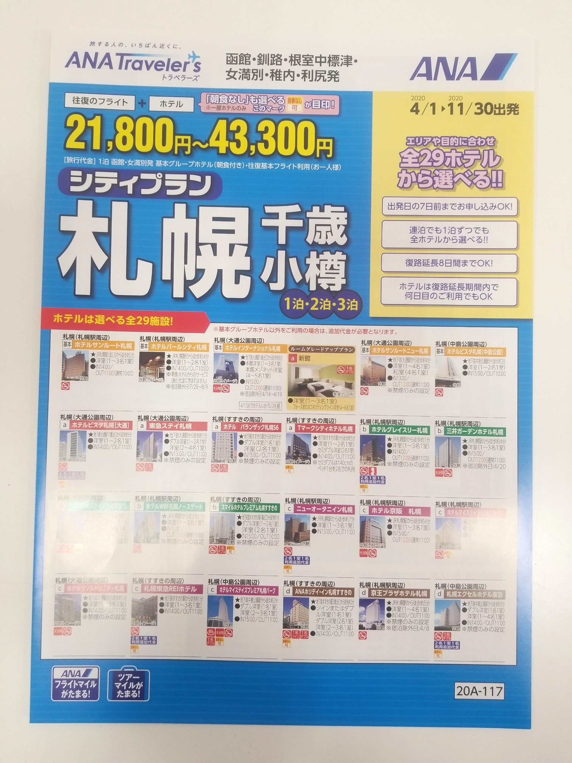 こんにちは!東北海道トラベル ハートフルツアーよりご案内です^^ 4月から11月のANAシティプラン札幌が本日より発売開始となります! 札幌へのご出張やご観光にとっても便利!復路延長8日間までOK!ホテルは何日目のご利用でもOK!連泊でも1泊ずつでもお好きなホテルをお選びいただけます! 詳しくは、東北海道トラベル ハートフルツアーまでお気軽にお問い合わせください^^ TEL 0153-73-4572