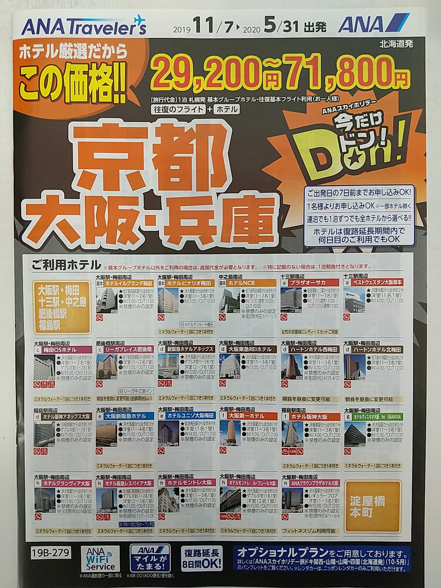 ANAスカイホリデー、今だけDon!京都、大阪、兵庫が