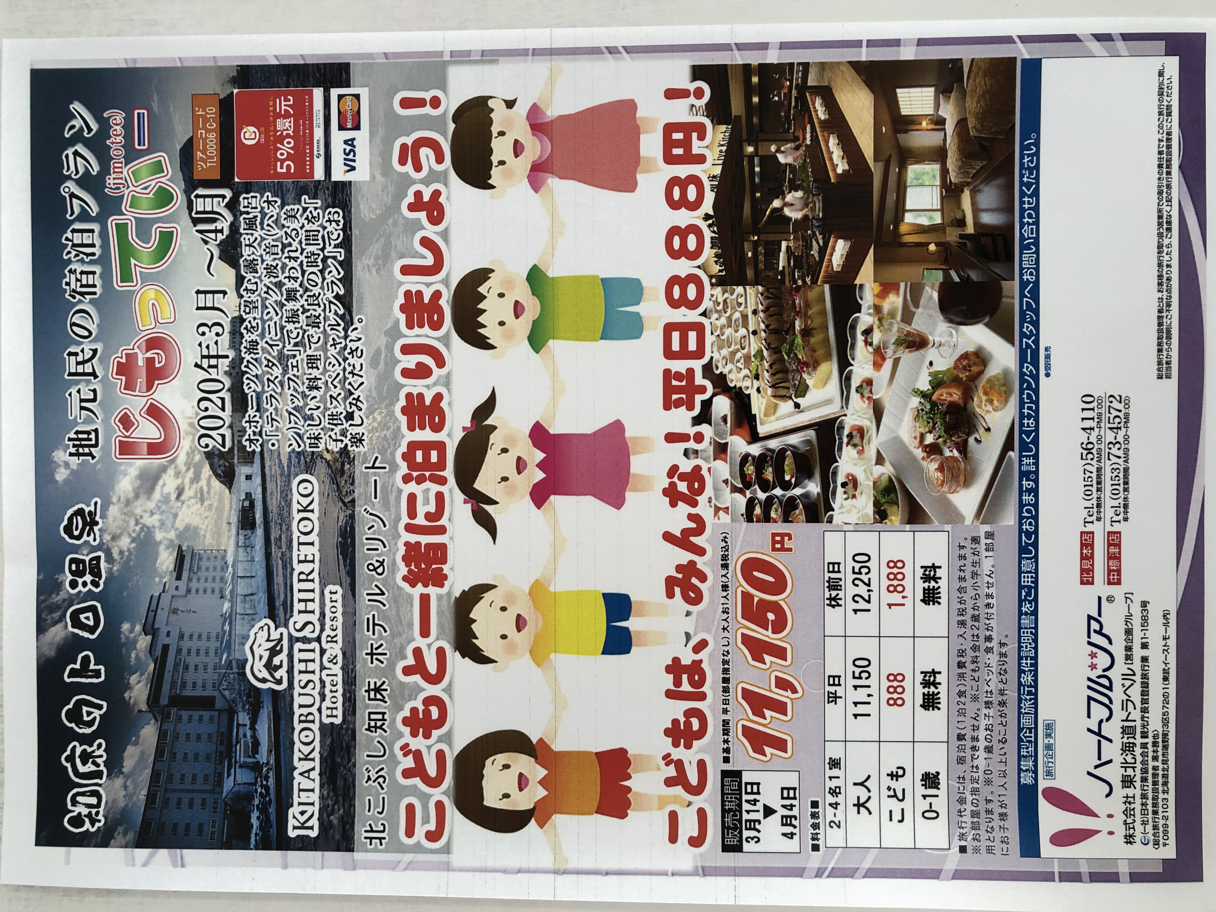 本日は、当店オリジナル温泉ご宿泊プランじもってぃーより、北こぶし知床ホテル&リゾートのお得なプランをご紹介させて頂きます!