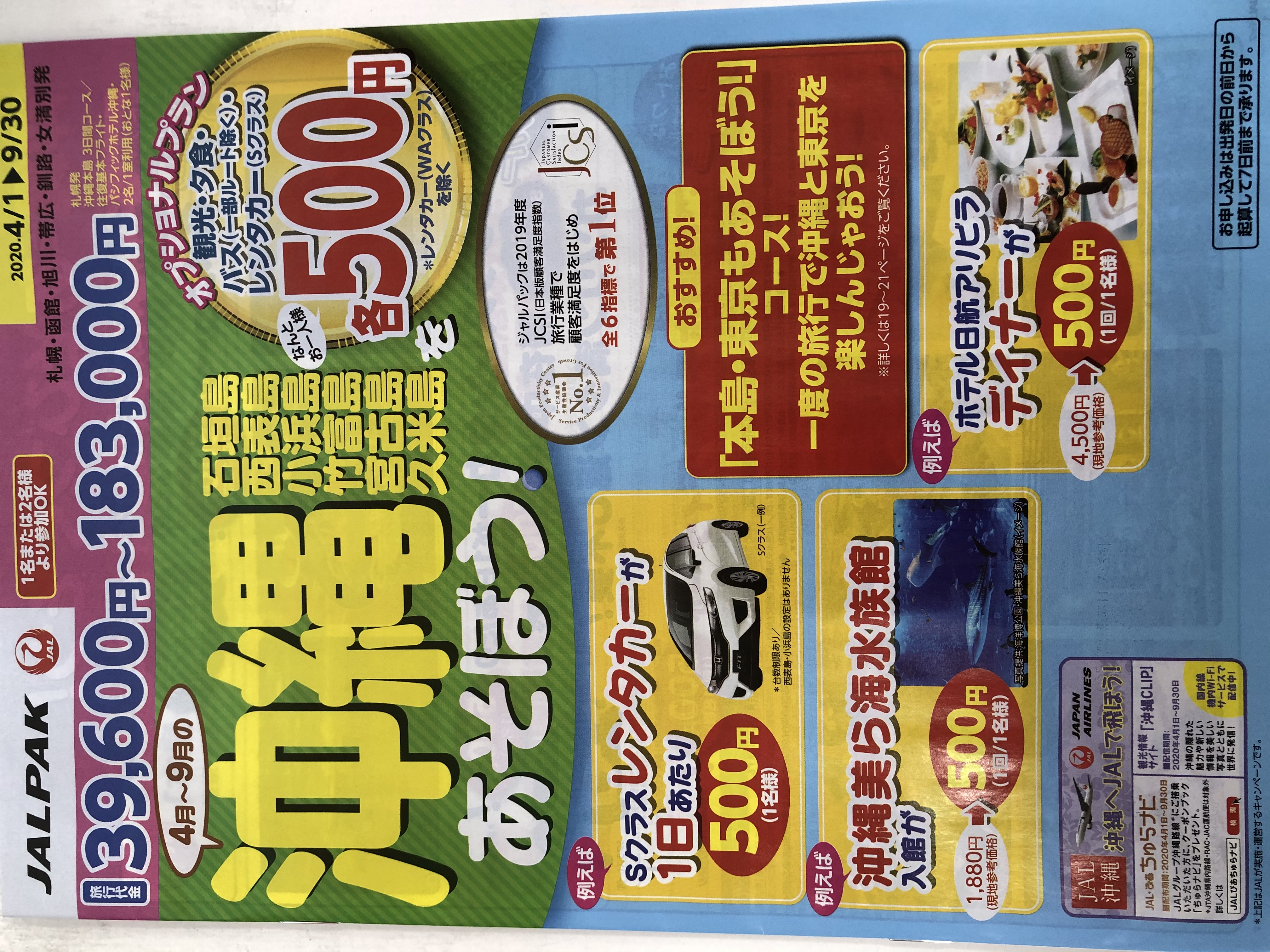お得な500円オプショナルプラン付きJALPAK 沖縄をあそぼう!で、夏休みのご旅行など、これから先のご旅行にいかがでしょうか(*^-^*)