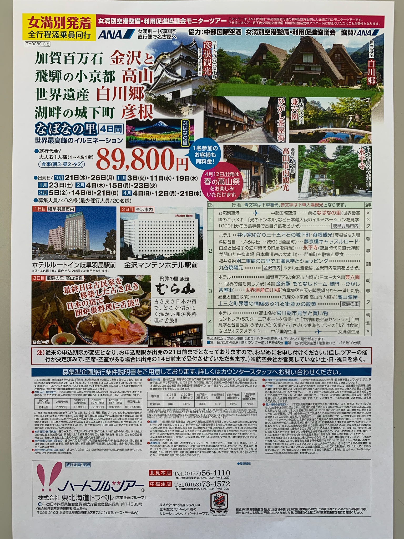 金沢と高山・白川郷・彦根となばなの里4日間