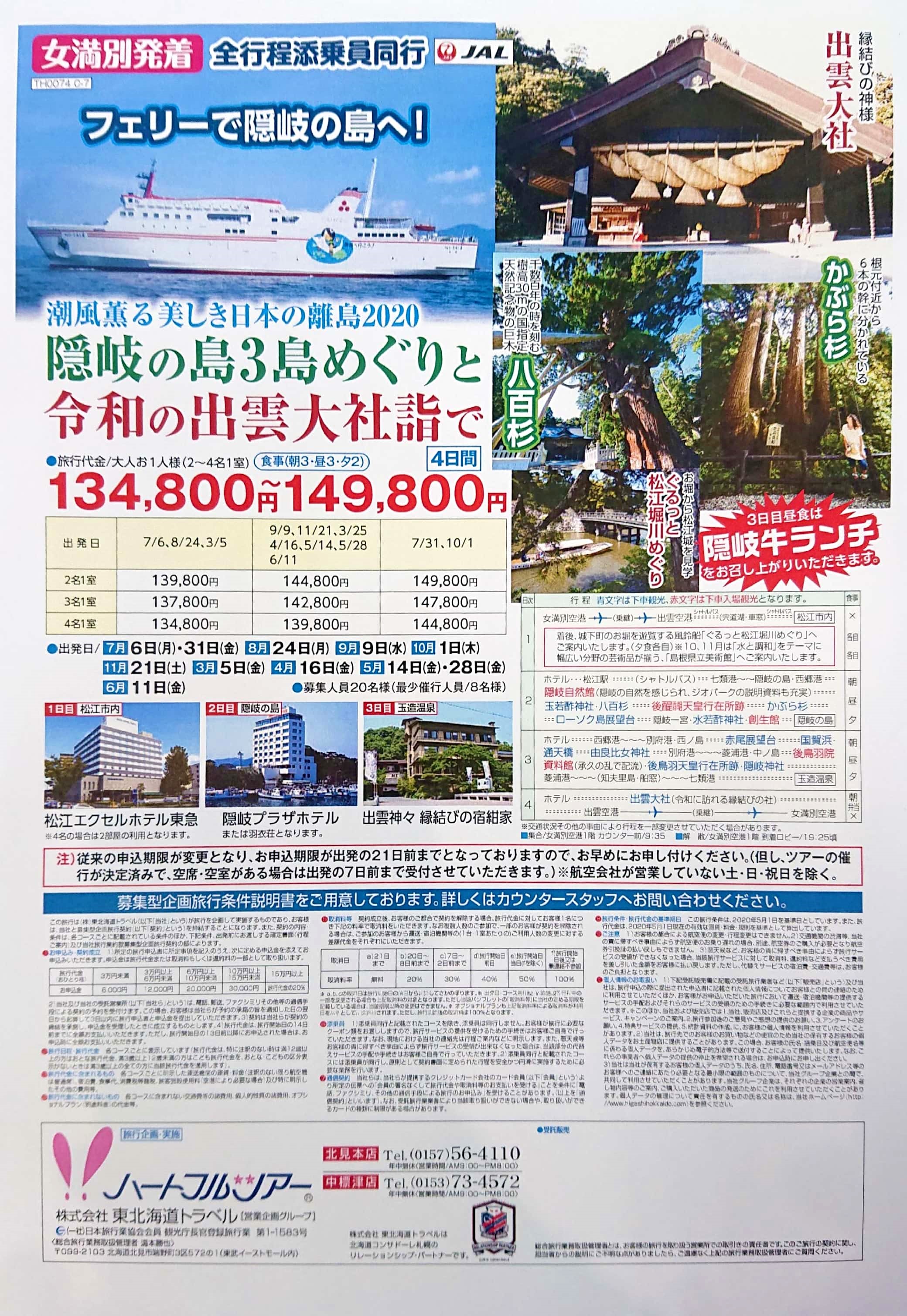 女満別発着 「隠岐の島3島めぐりと令和の出雲大社詣で 4日間 」!!