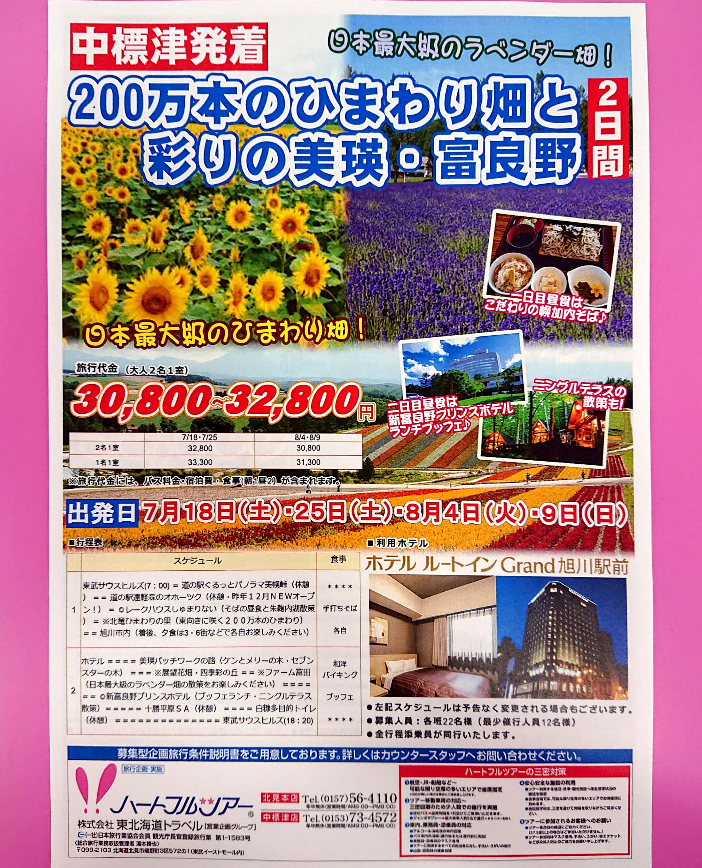 「200万本のひまわり畑と彩りの美瑛・富良野2日間」好評発売中です(^^♪
