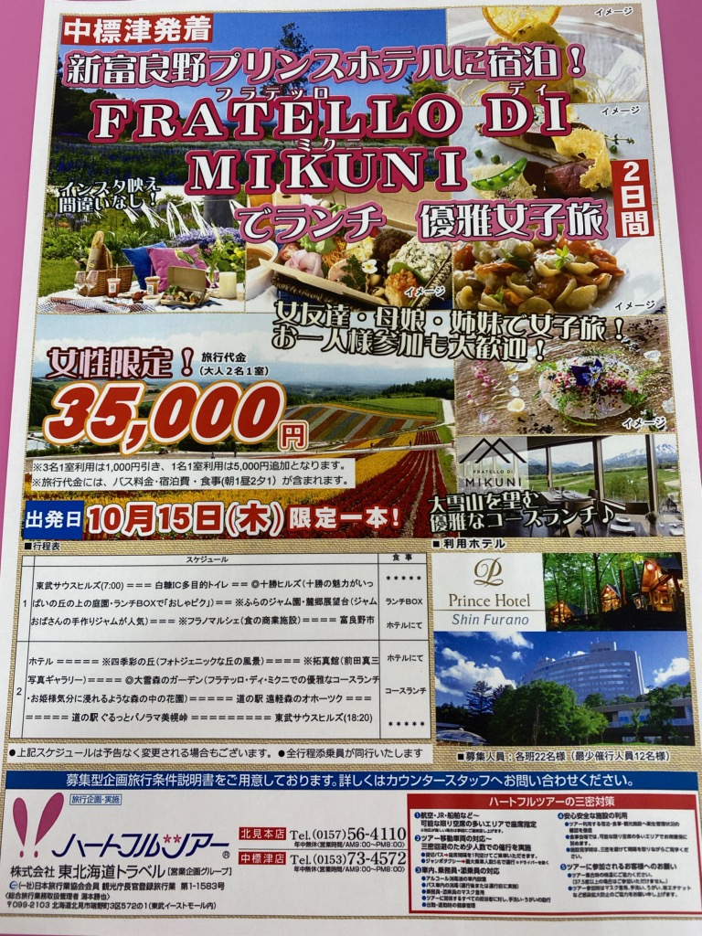 こんにちは!東北海道トラベル ハートフルツアーよりご案内です(^^)/