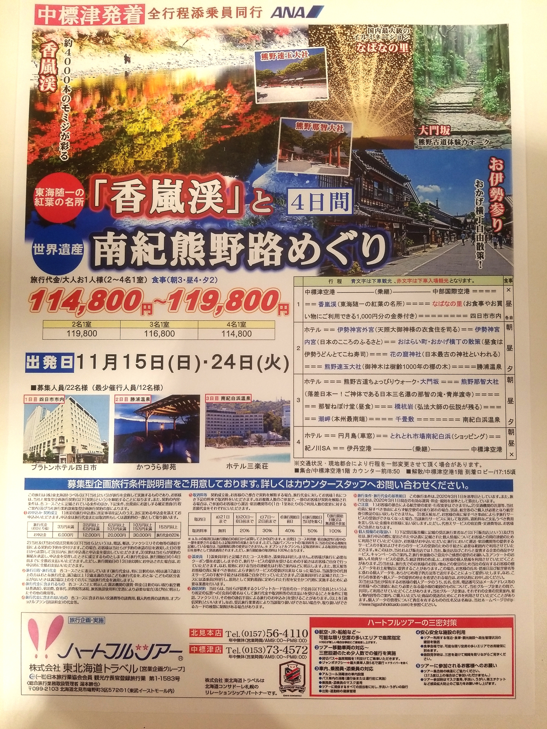 東海随一の紅葉の名所「香嵐渓」と世界遺産南紀熊野路めぐり 4日間の旅が好評発売中!