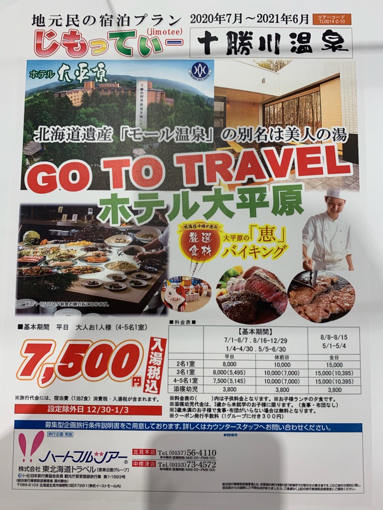 こんにちは!東北海道トラベルハートフルツアーよりご案内です。 今日から4連休ですね♪温泉でゆっくりするのはいかがでしょうか? 十勝川温泉「ホテル大平原」は美人の湯ともいわれるモール温泉です。 代金はおひとり様7.500円からご案内可能です。 当日のご予約も空いていればご宿泊いただけます。どうぞお気軽にお問い合わせください。 東北海道トラベル中標津店TEL 0153-73-4572