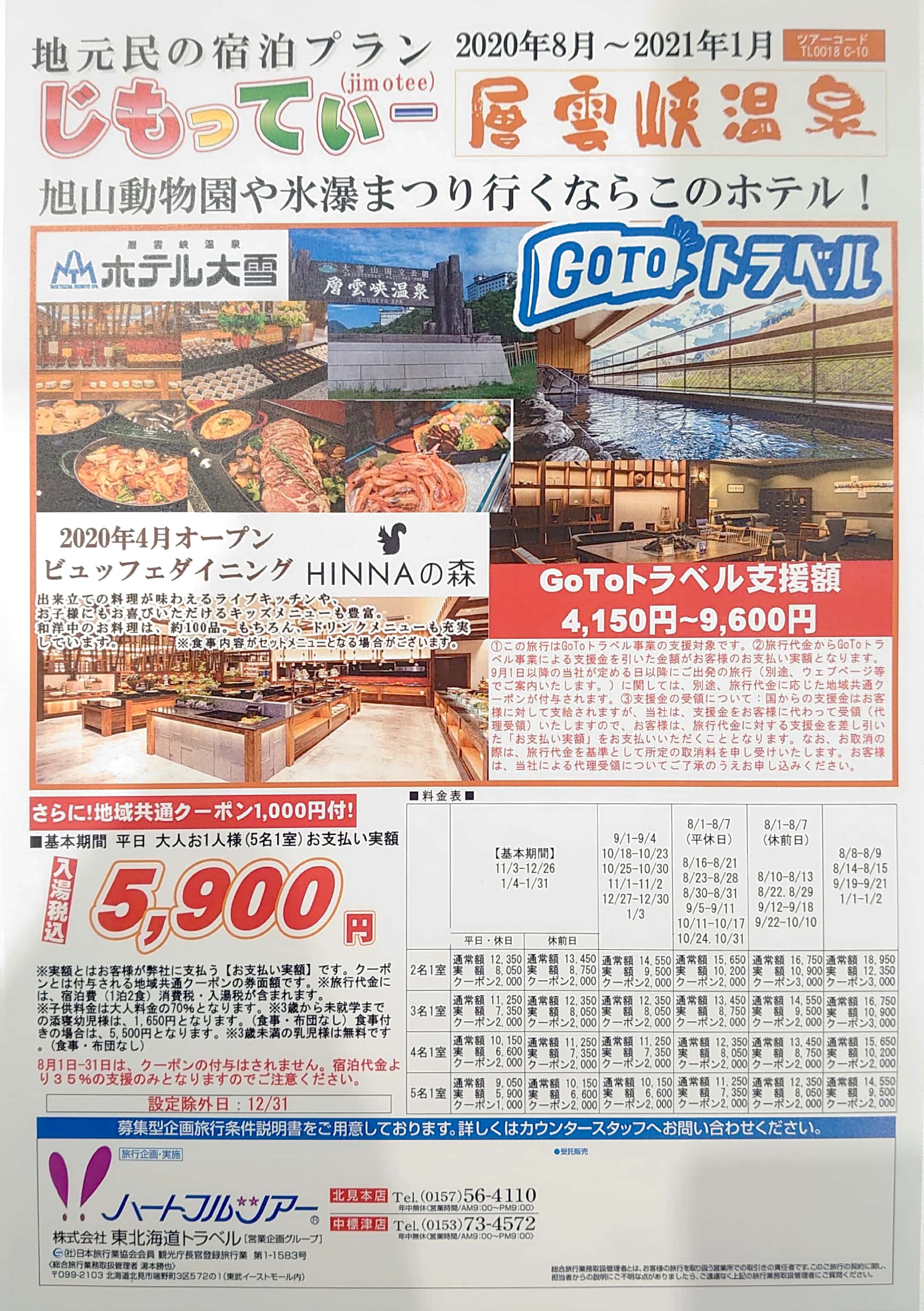 東北海道トラベルハートフルツアー 中標津店TEL 0153-73-4572(受付時間 9:00〜20:00)