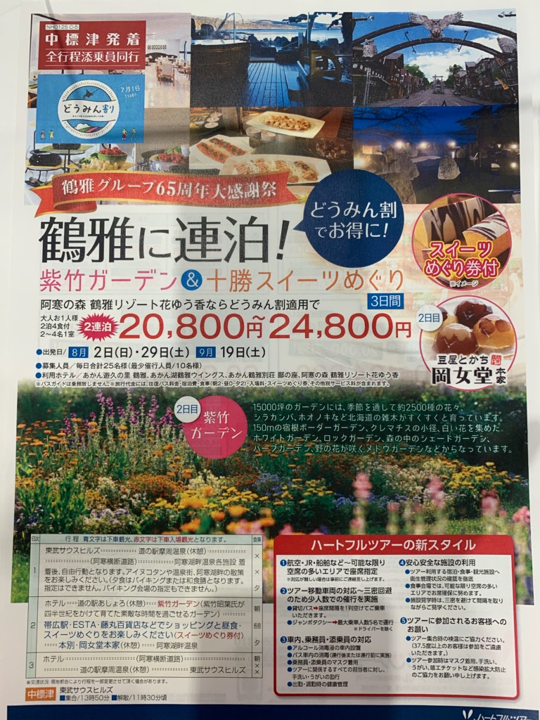 「鶴雅に連泊!紫竹ガーデン&十勝スイーツ巡り3日間」
