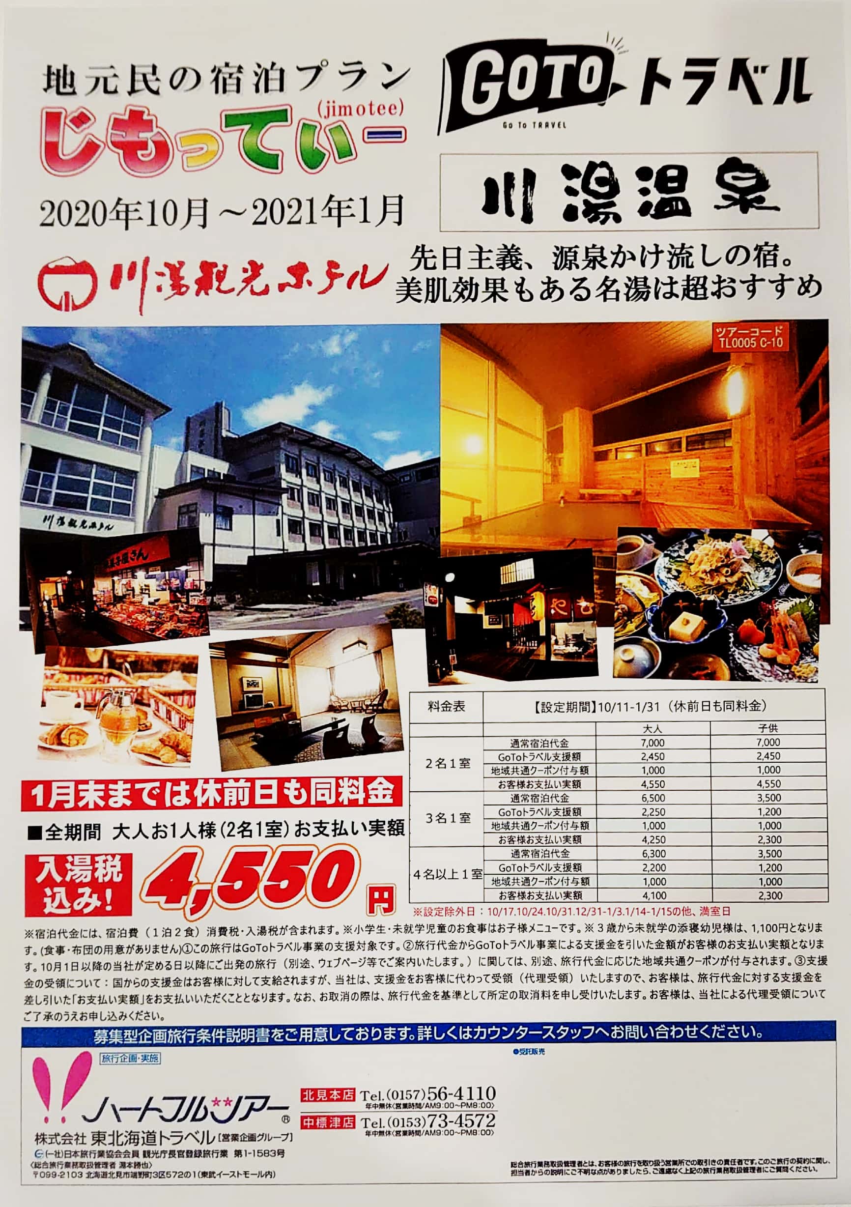 道東の温泉宿泊プラン「じもってぃー」好評発売中です。