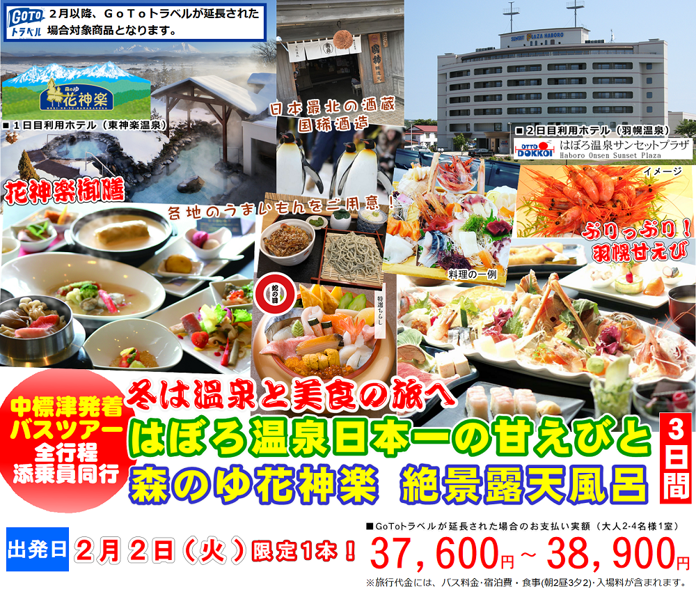 冬は温泉と美食の旅へ!中標津発着バスツアー