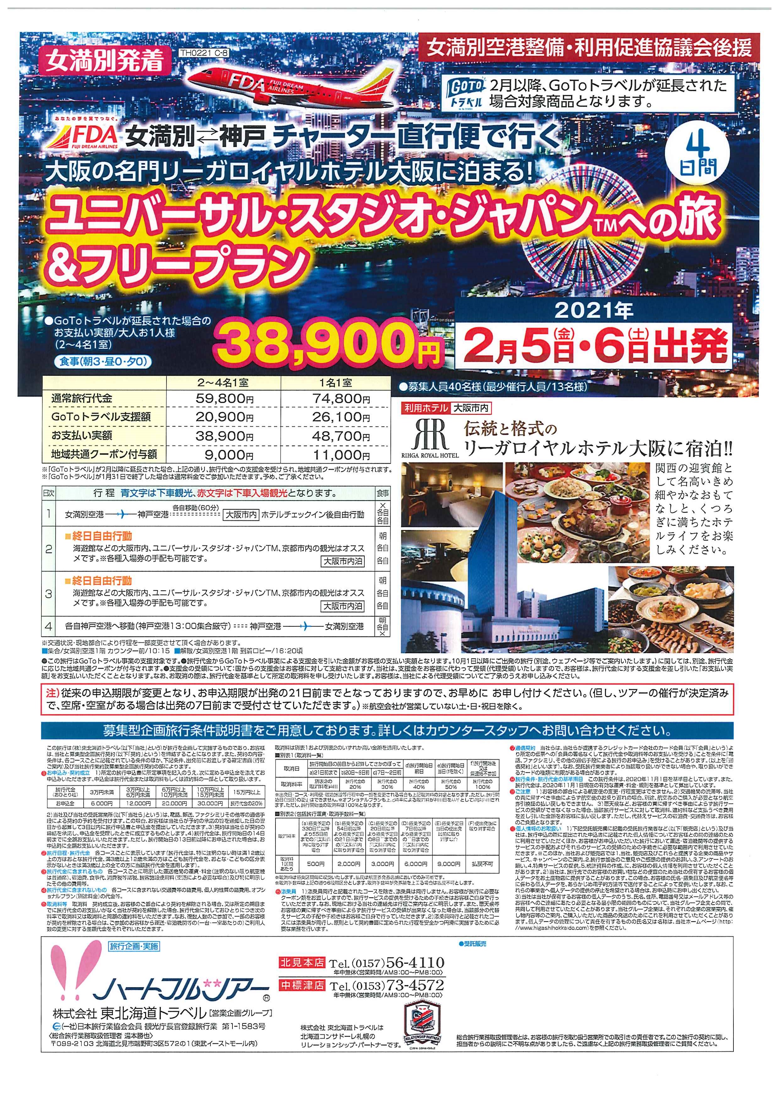 女満別⇔神戸チャーター便で行く!USJへの旅&フリープラン