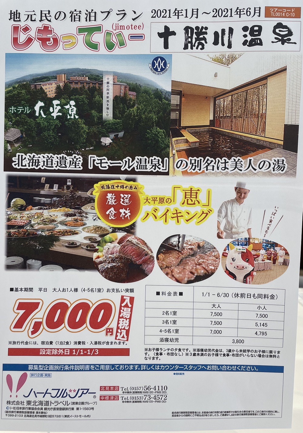 十勝川温泉のホテル大平原なら1泊2食付き大人おひとり様7,000円~7,500円でご宿泊いただけます。