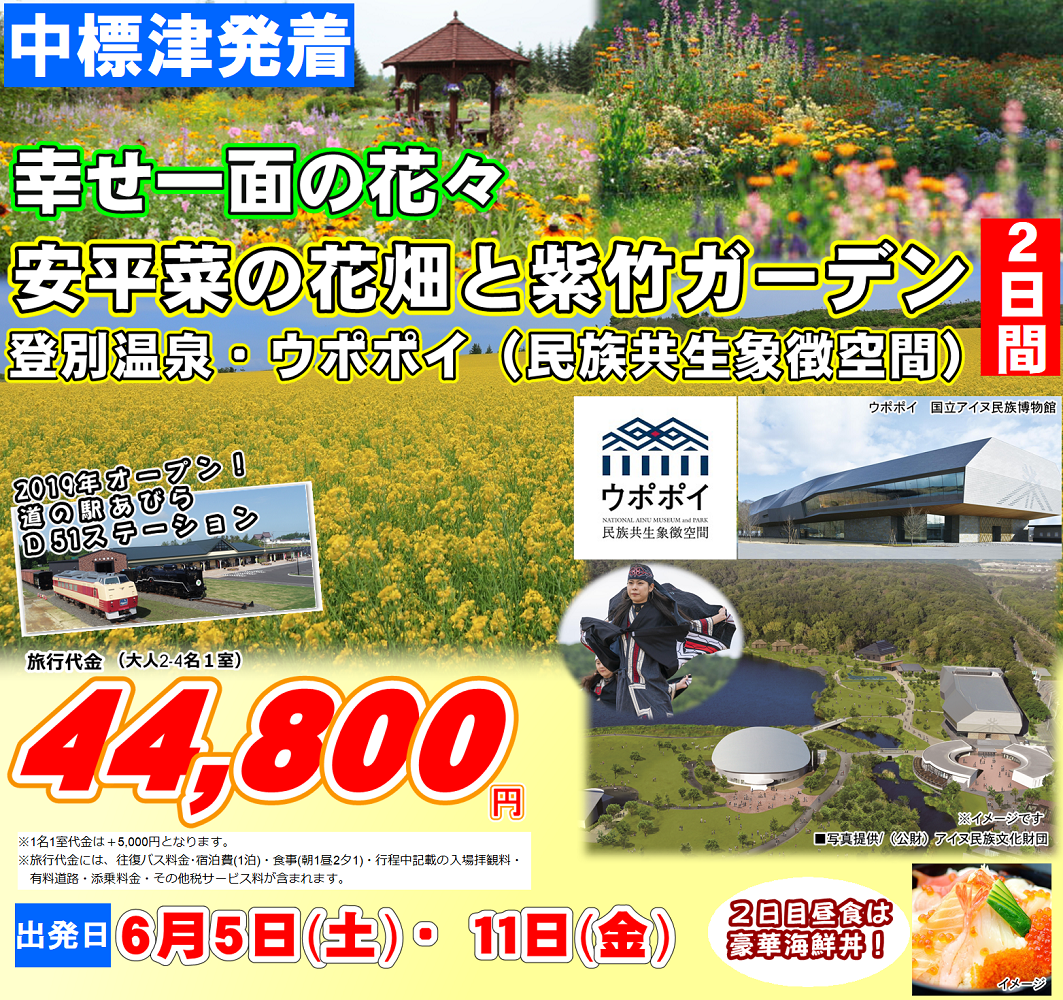 中標津発着バスツアー 安平菜の花畑と紫竹ガーデン2日間!