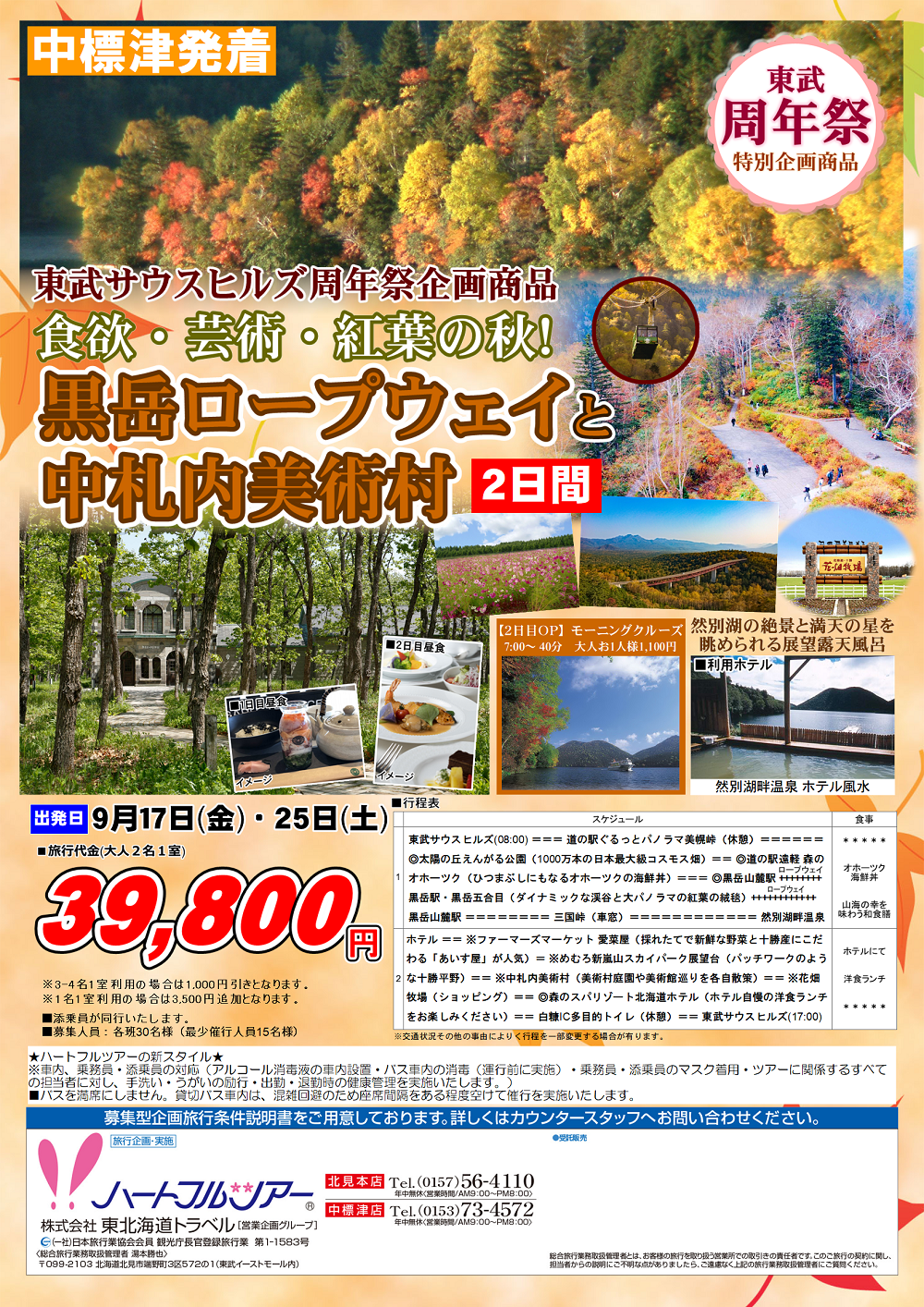 お問合せは、東北海道トラベルハートフルツアー中標津店