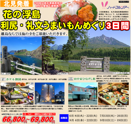 北見・端野発着、毎年大人気の離島ツアー「利尻・礼文うまいもんめぐり 3日間」