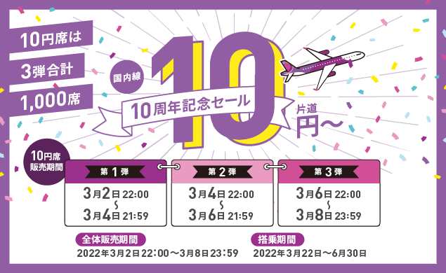 就航10周年を記念して、10周年記念セールを開催いたします!