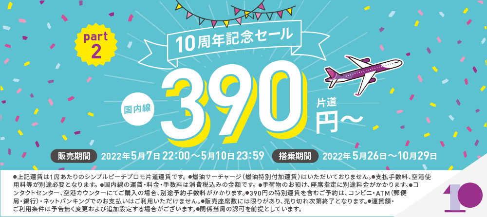 就航10周年を記念して、10周年記念セールを開催いたします!