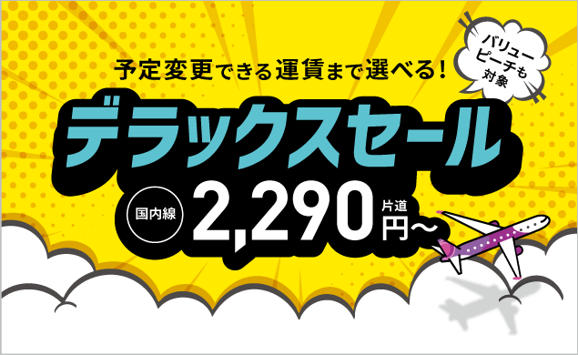 当店では、Peach航空のお申込を承っています。8/8までのデラックスセールを実施中で、搭乗期間は2022年8月23日から12月22日までです。運賃はシンプルピーチの場合、釧路=関西空港(大阪)間の片道4390円から、釧路=成田空港(東京)片道3290円~となっております。別途、新規予約手数料・支払手数料が必要です。