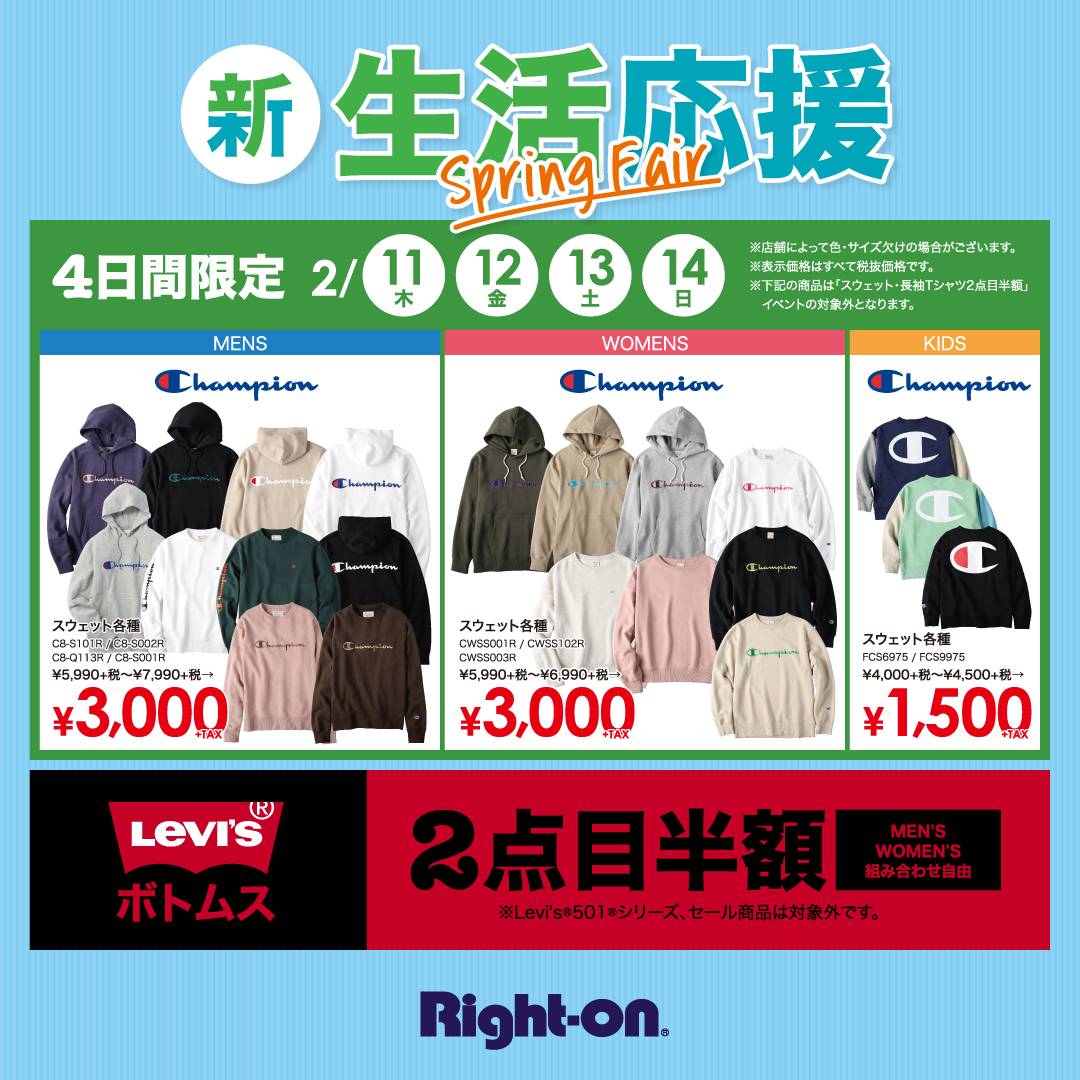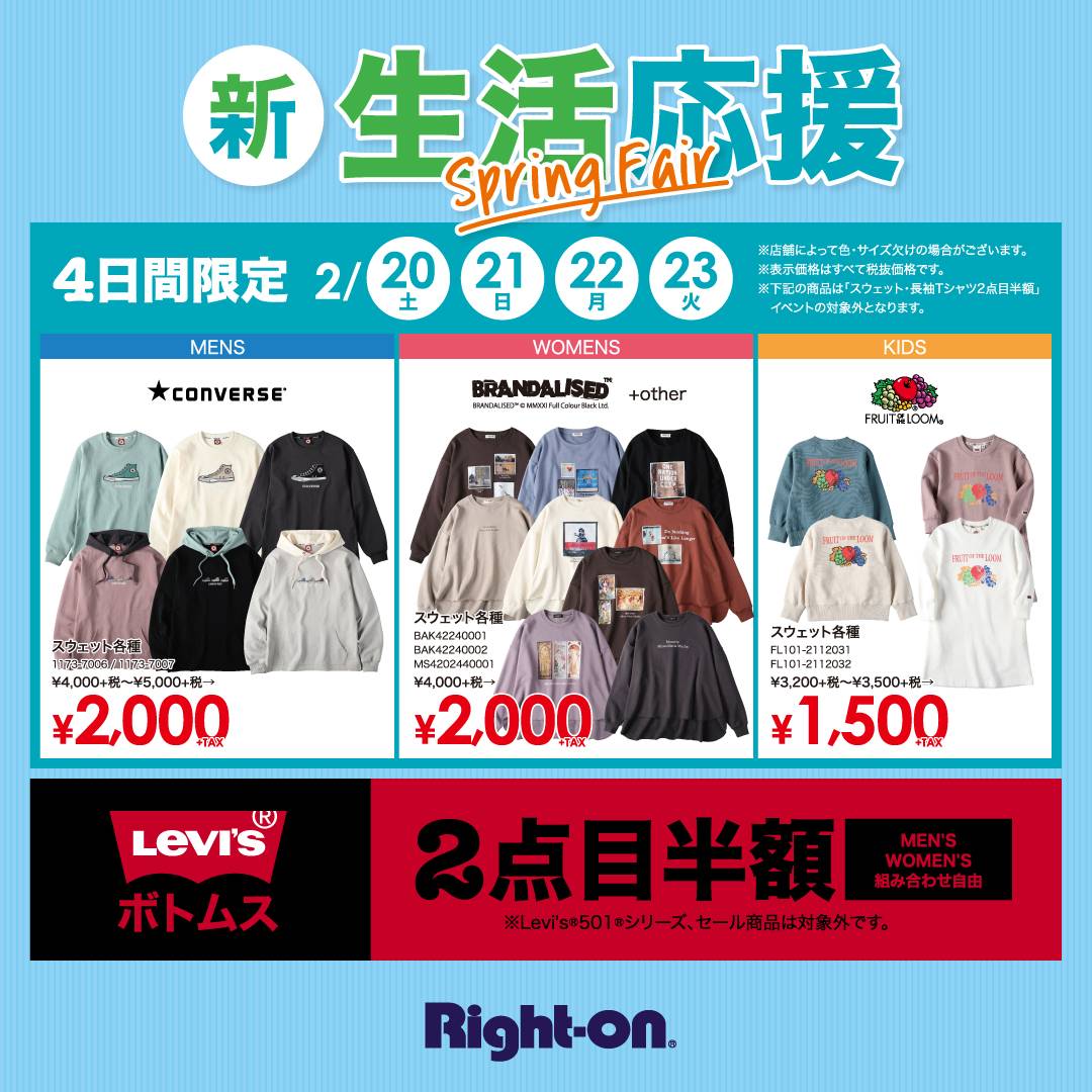 Right-onでは2/11(木)から新生活応援Fairを開催!週替わりで4日間限定お買い得商品もご用意いたします!