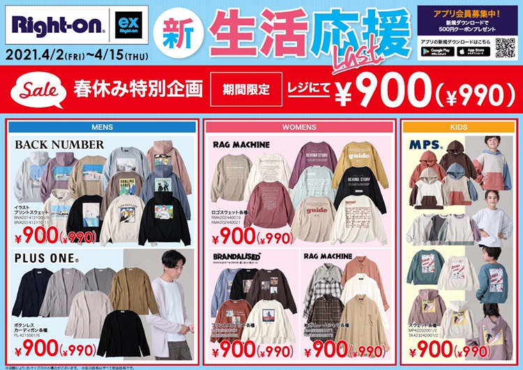 また、Right-on公式アプリ特別イベントも同時開催!!アプリ会員様限定の特別プライスアイテムをご用意致しております!