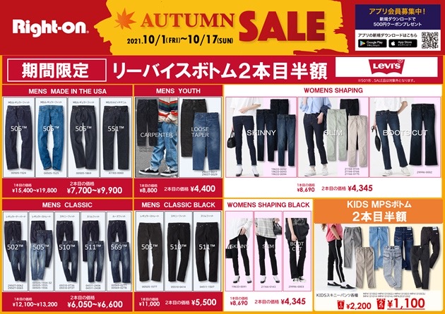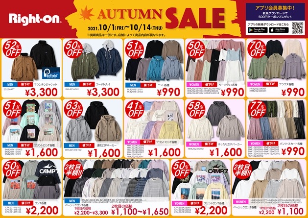 ショップニュースの依頼です。 お願いします。ただいまRight-onではAutumn SALE開催中です!!