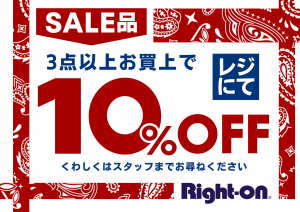 ただいまライトオンでは、セールアイテム3点以上おまとめ買いで10%OFFのお買い得イベントを開催しております。 まだまだ大活躍のロンT、羽織ものなど豊富にご用意しておりますのでお誘い合わせの上ご来店くださいませ!