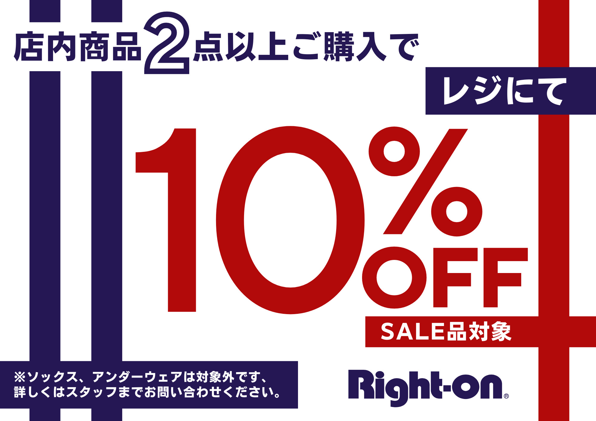 ただいまライトオンでは、店内商品2点以上ご購入でレジにて10%OFFのおまとめ買いイベントを開催致しております。