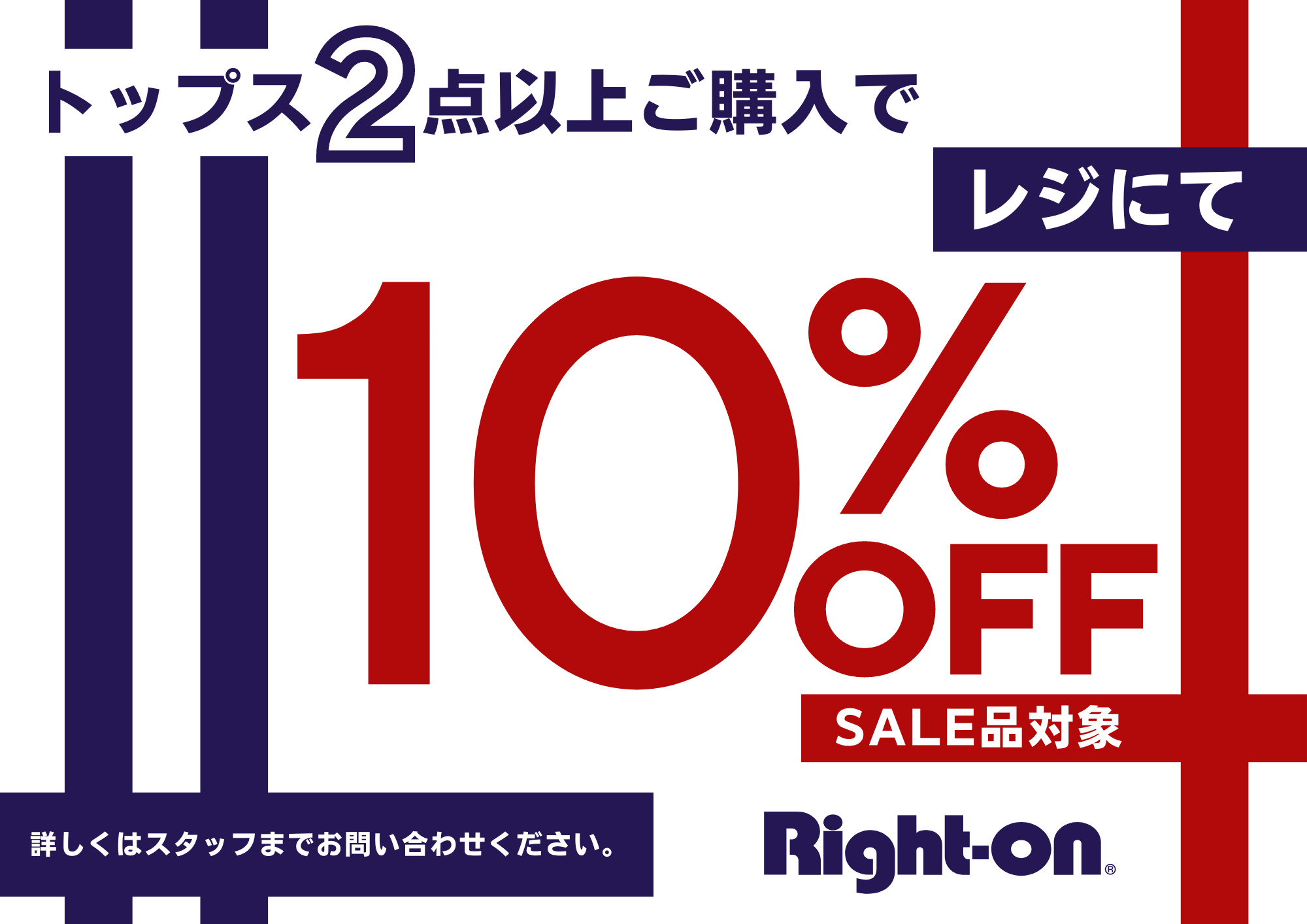 ただいまライトオンでは、トップスアイテム2点以上で10%OFFのお買い得イベントを開催しております。 メンズ、ウィメンズ、キッズの組み合わせ、新作などの定価商品からセール商品の組み合わせもご自由となっております。