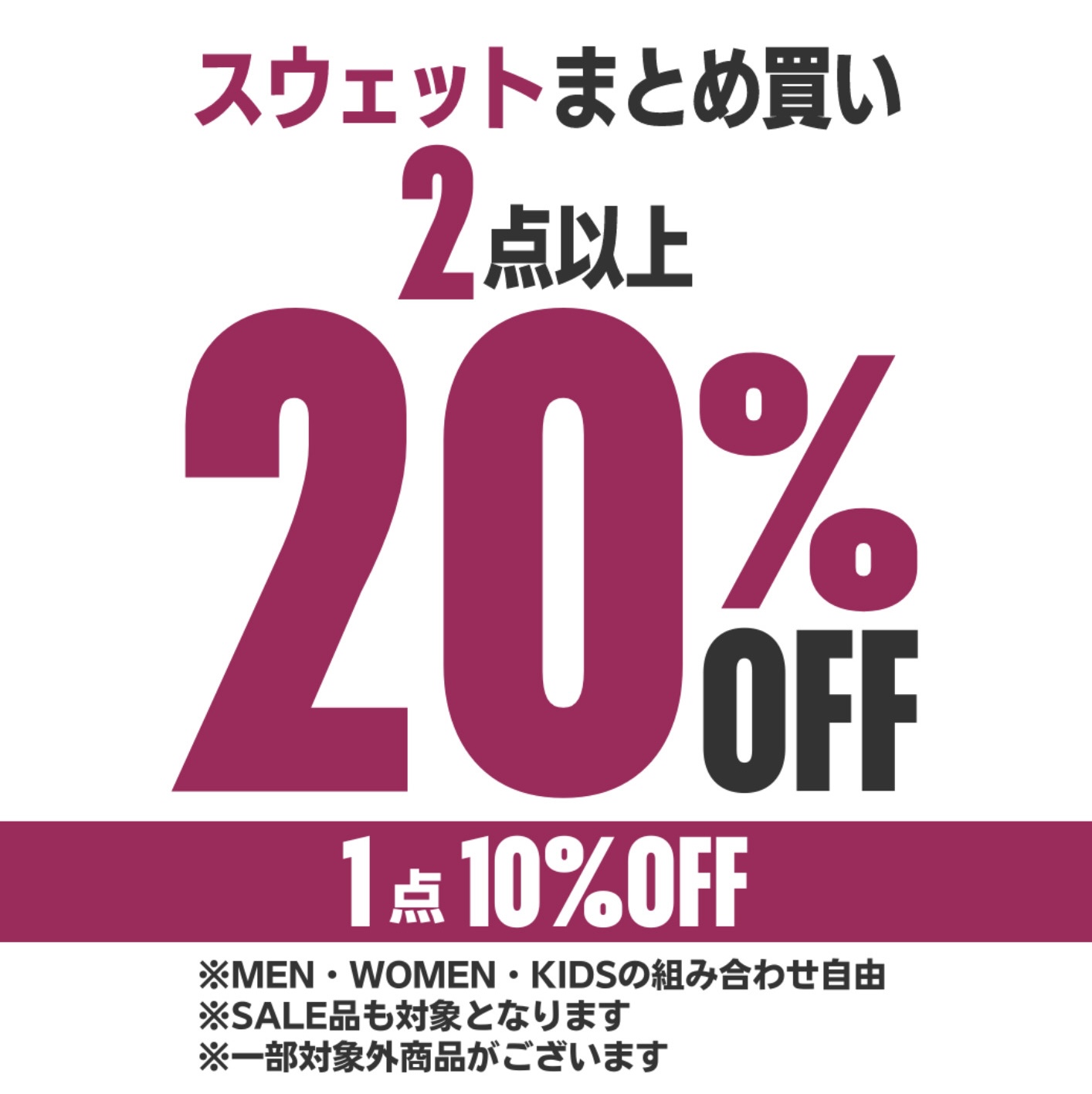 日頃より当店をご愛顧頂き誠にありがとうございます。 ただいまライトオンでは、スウェット1点10%、2点以上で20%OFFのお買い得イベントを開催しております。メンズ、ウィメンズ、キッズや定価とセール組み合わせご自由です。新作アイテムもお買い得になりますのでお誘い合わせの上ご来店下さいませ。 開催期間【9/27〜10/17】