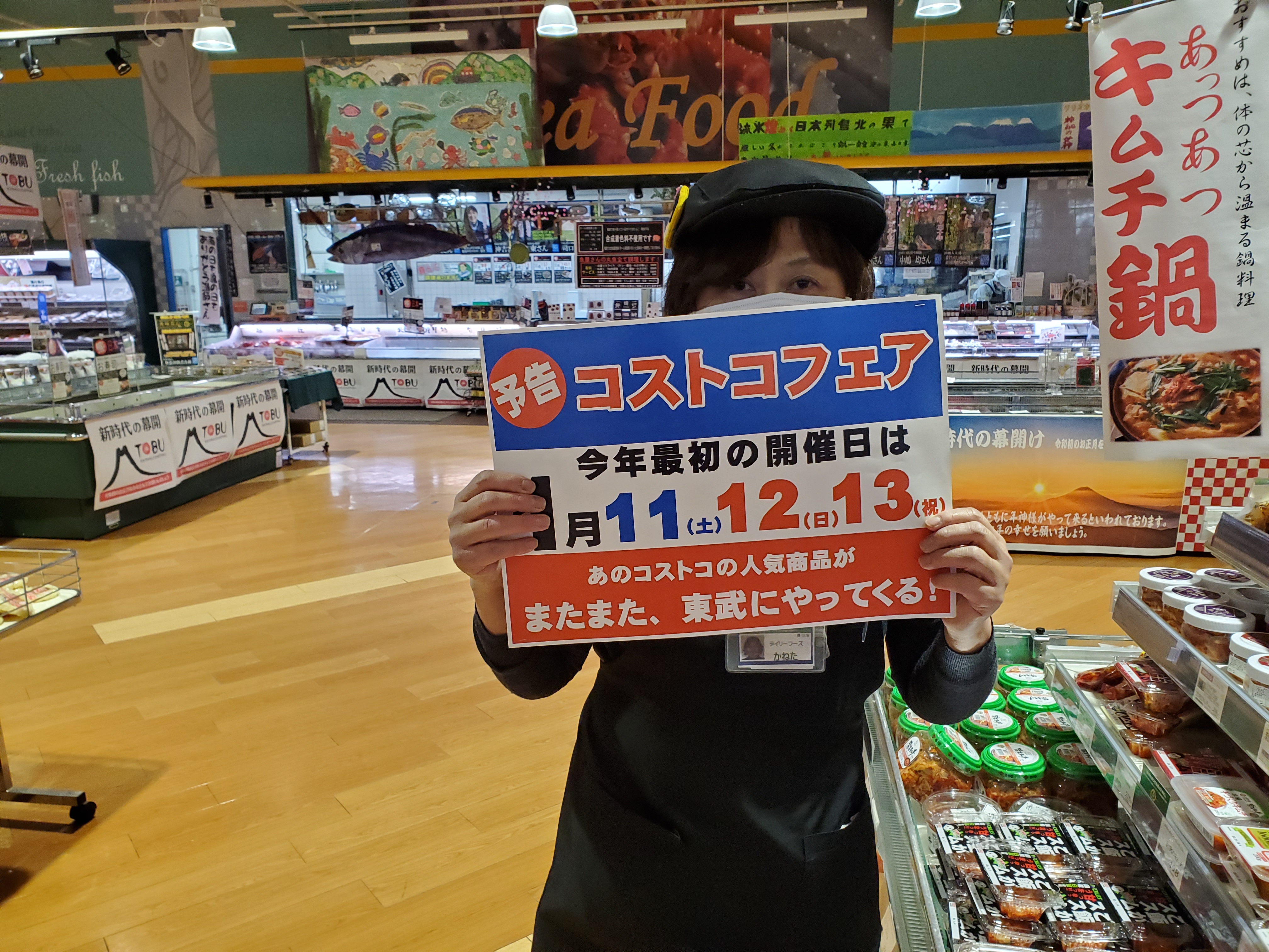 今年も月2回開催予定のコストコフェアをよろしくお願いいたします。令和の正月最初のコストコフェアは1月11日(土)~13日(月)の3日間です。チーズタルトやベーグル、ティラミス、人気のディナーロールなど販売します。ご利用お待ちしております。